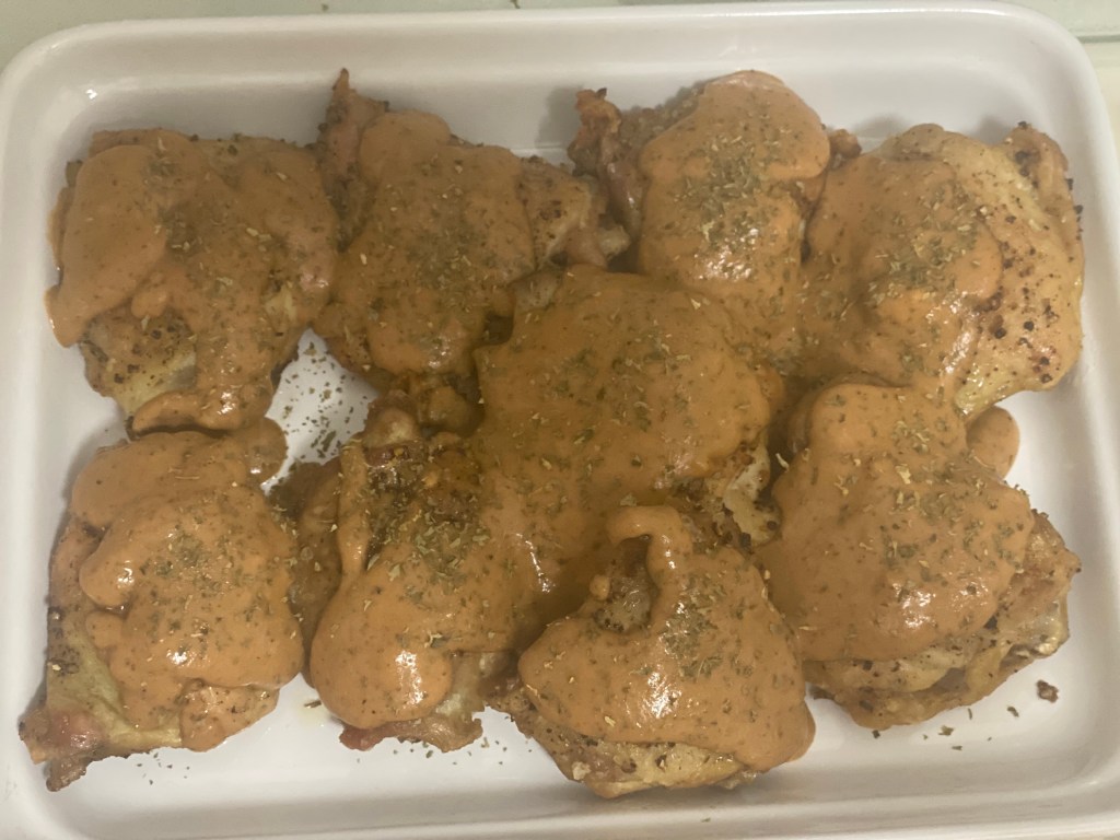 - Line baking tray with aluminum foil (to catch excess fat and make it easier to clean afterwards)